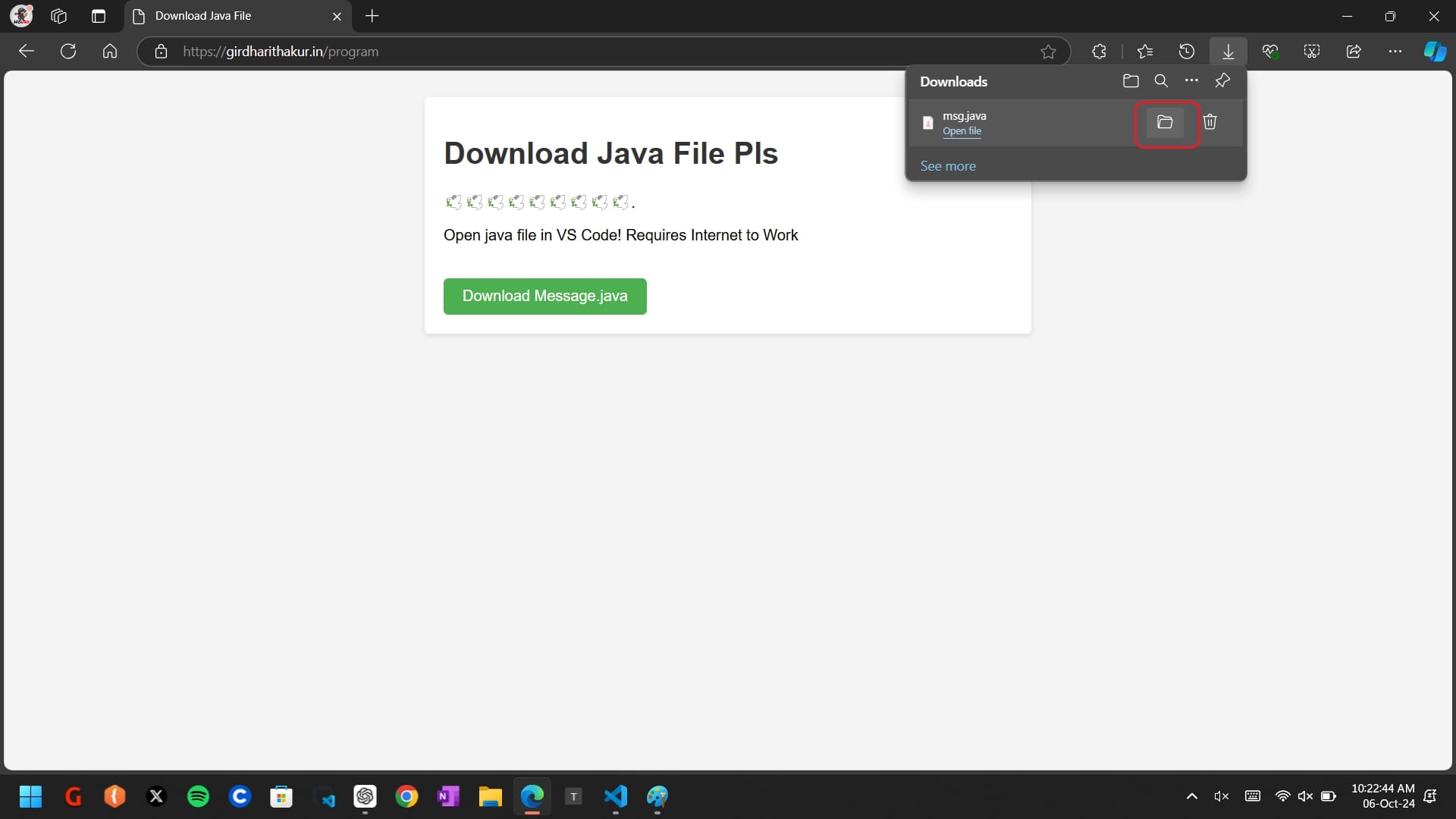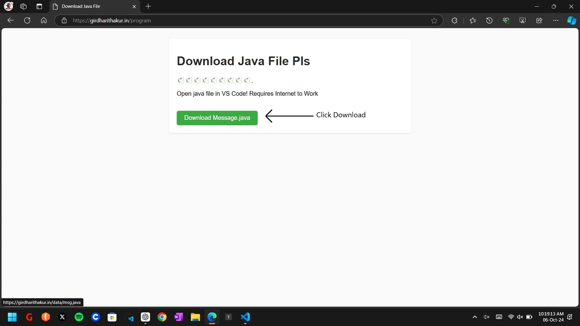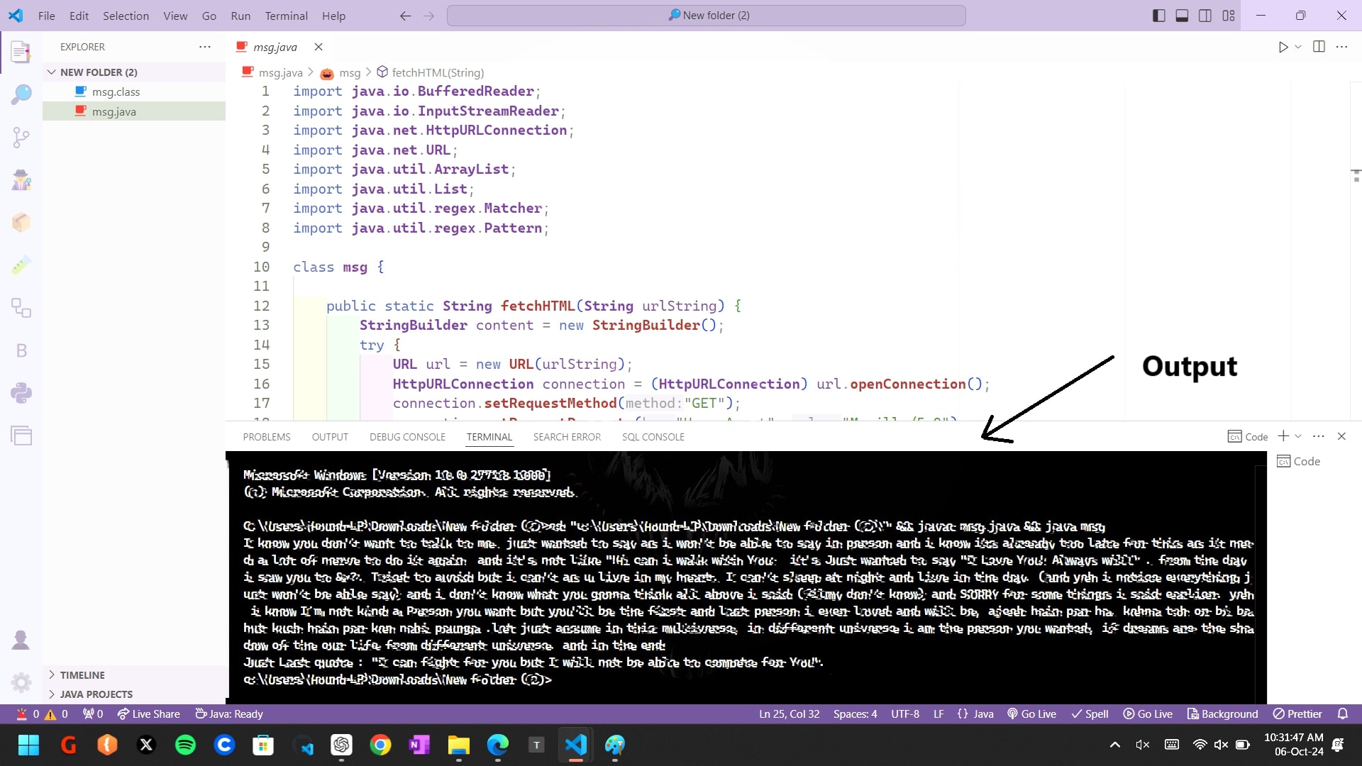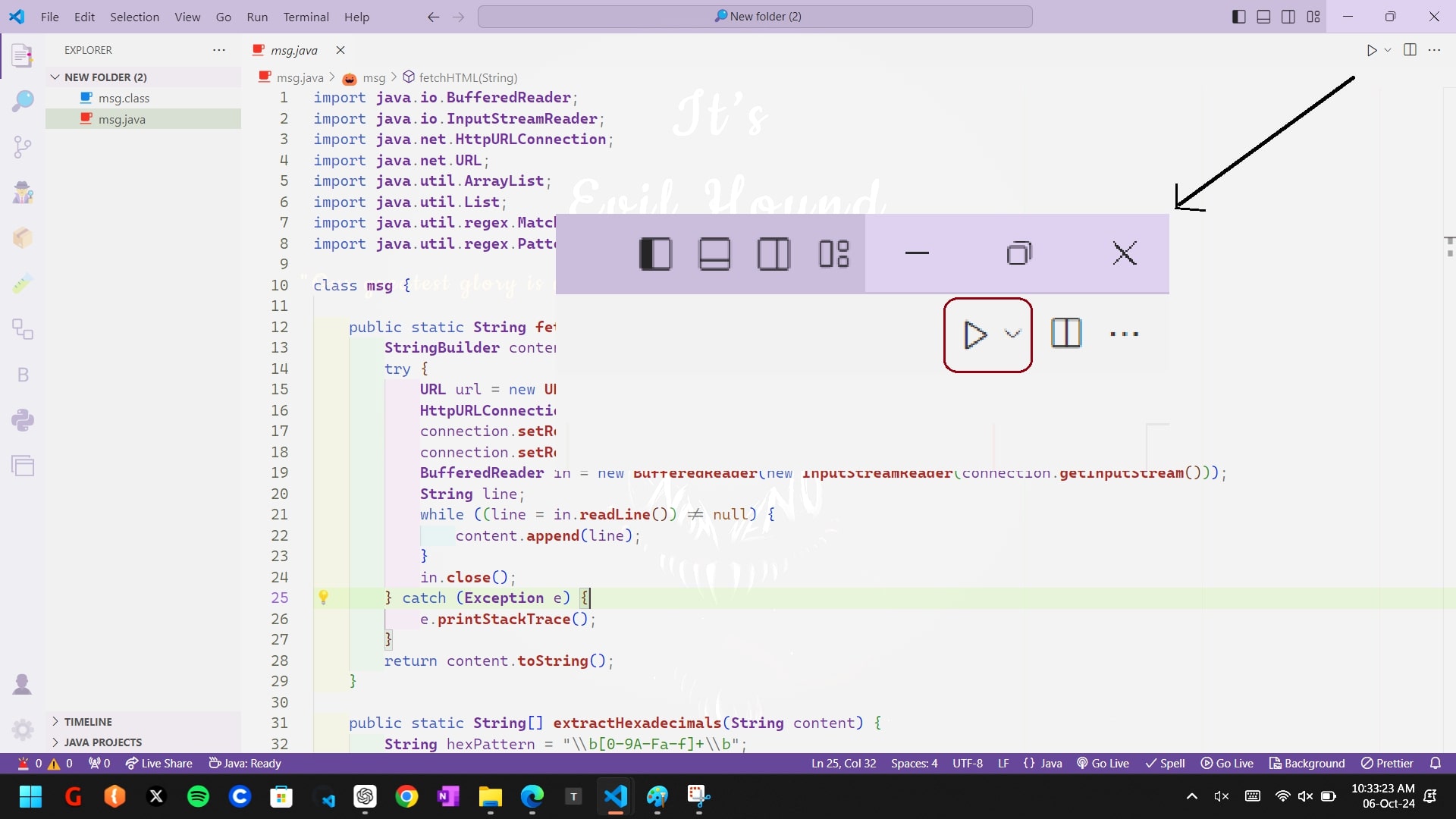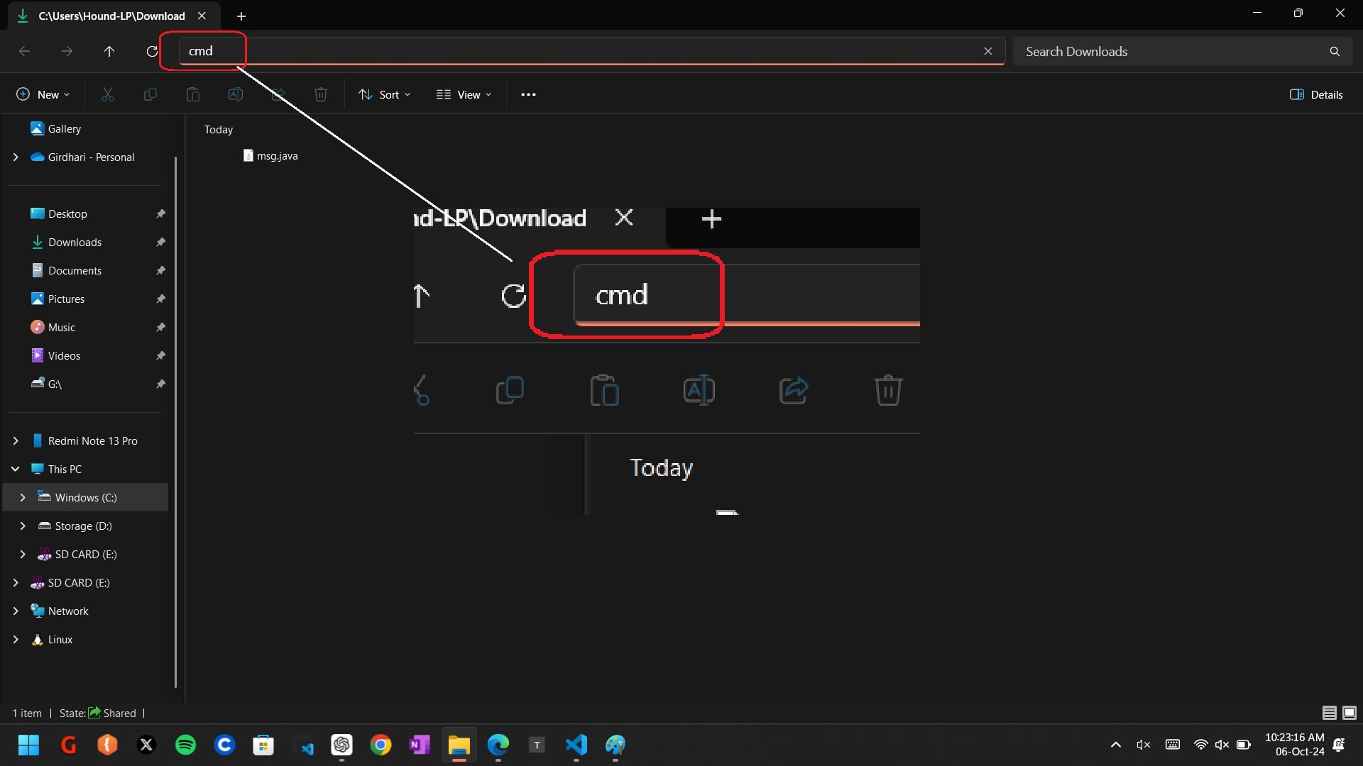 3. Now in cmd windows type "javac msg.java" on top right corner